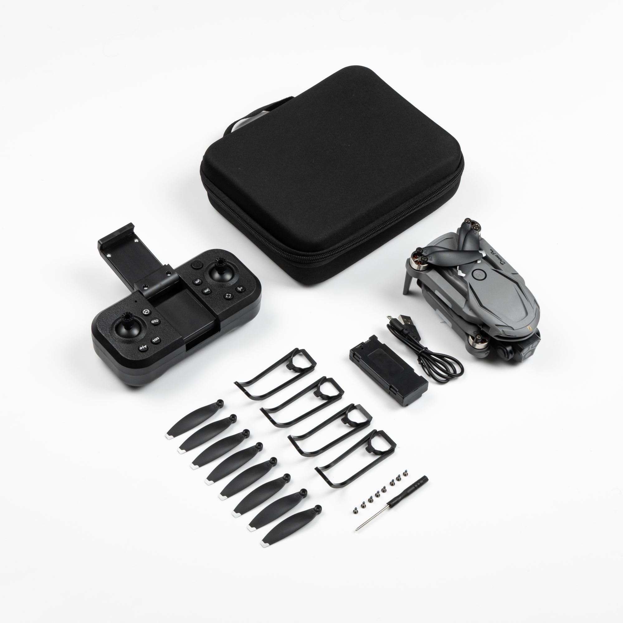 Drones come with a protective carry bag to keep your gear safe and organised. Inside you’ll find the drone, remote controller, spare propellers, guards, tools, charging cable, and battery.